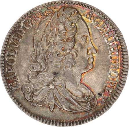 ojtečka za CAROLVS: VI. D:G.R. IS. A - G. HISP. H: B: REX / dvojtečka před :PATRONA. "R" |