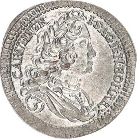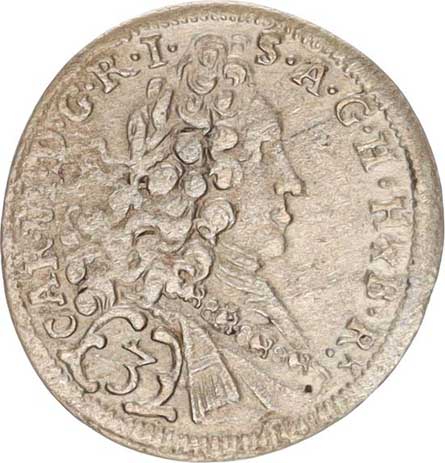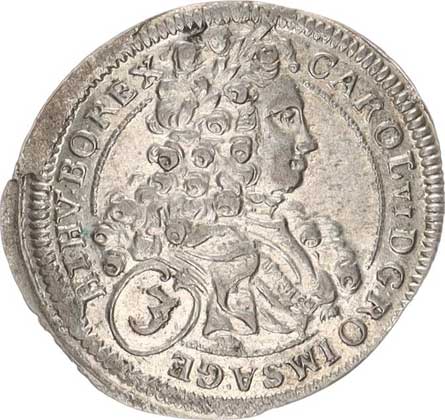 | 808. | 3 kr. 1720 b.zn., Praha-Scharff MKČ 1835 1,33g m. hr. | 1/1 | 900,- | --.- |