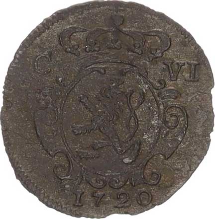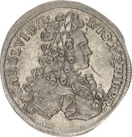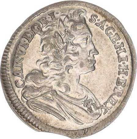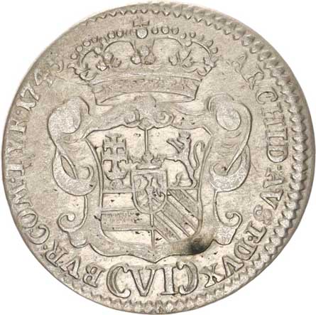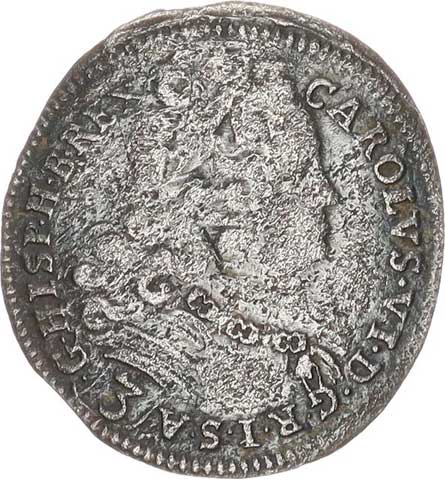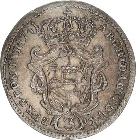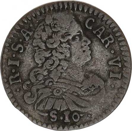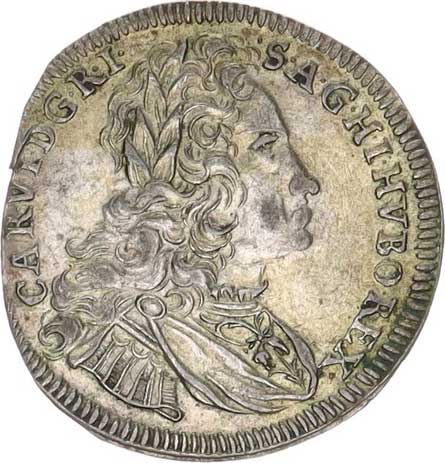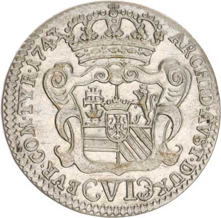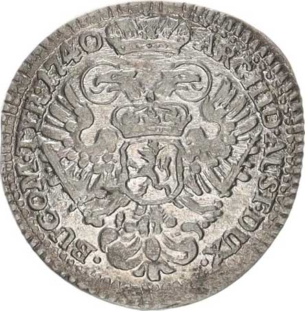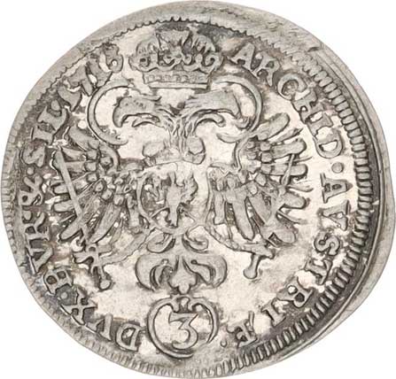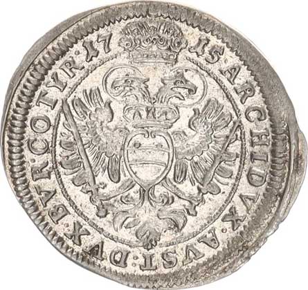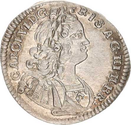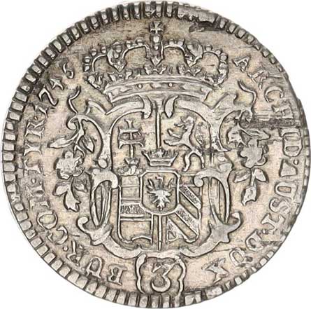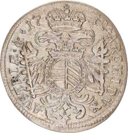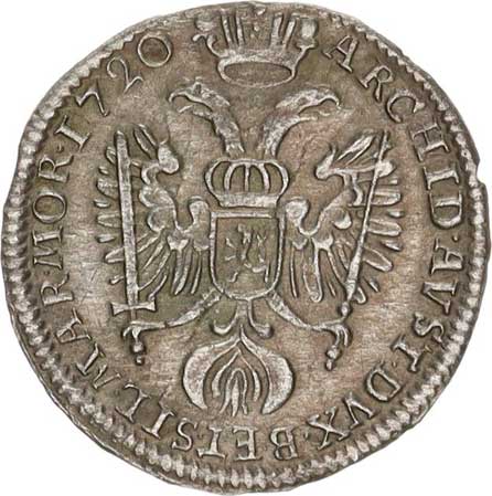 ako 1830, ale koruna bez stuh, opis: ARCHID. AVST. DVX. B. ET. SI L. MAR. MOR. 1716. (nepublik. typ av. i rv.) "R" 1,638 g |