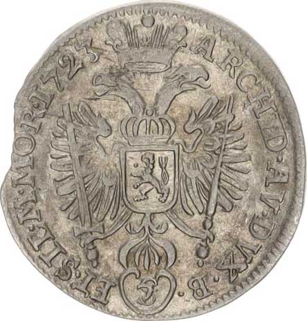 | 809. | 3 kr. 1723 FS, Praha-Scharff MKČ 1838 var.: HI. HV. B. REX /