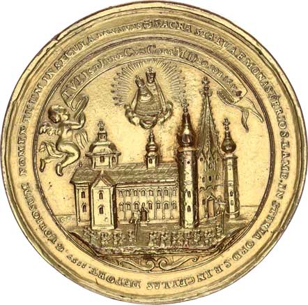 e St. Lamberta do Mariazell, Av: Zázračný obraz nad kostelem, opi s / 10-ti řádkový nápis a opis Cu zlacené 50,5 mm 31,813 g |