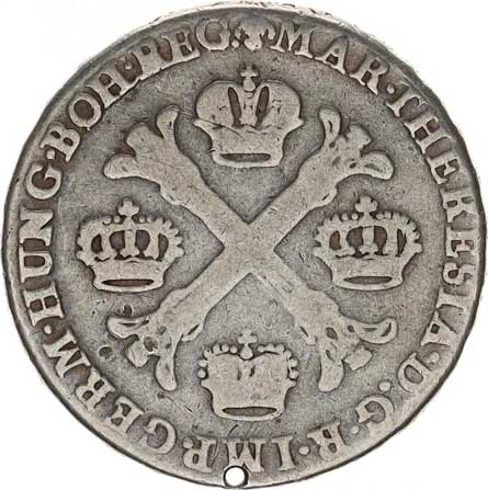 | 853. | 1/2 Tolar křížový 1766 zn.hlava, Brusel dírka | -2/3 | 260,- | 400,- |
