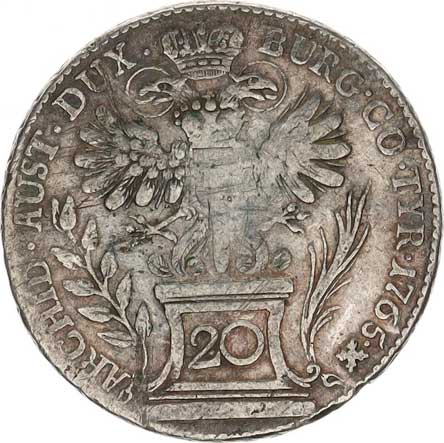 | 862. | 20 kr. 1763 b.zn., Praha mír. kraj. stř., ox. ďub. | 1/1+ | 3800,- | --.- |