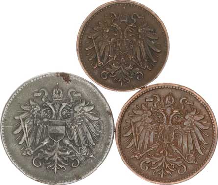 | 1814. | 1 Koruna 1901, 1908 jubilejní obě b.zn., +10 Fillér 1915 KB 3 k