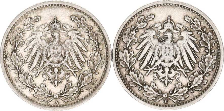 | 2943. | 50 Pfennig 1876 A(4x), B(2x); +10 Pfennig 1876 E, 1892 A, 1901 F;