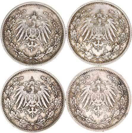 | 2938. | 1/2 Mark 1915 A; +10 Pfennig 1915 D, 1916 D 3 ks | RL-0 | 150,- | --.- |