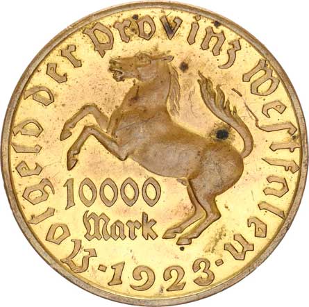 | 3031. | Westfahlen - 10 000 Mark 1923, Stein bronz zlacená 44 mm