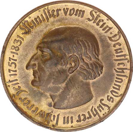 | 3038. | Westfahlen - 50 Millionen Mark 1923, Stein pozlac. bronz 44,5 m