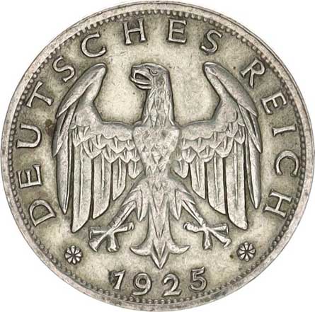 | 3077. | 1 Mark 1925 A KM 42 "R" | 1/1- | 120,- | 120,- |