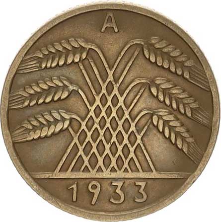 | 3025. | Sasko - 10 Mark 1921, zdemědělec se snopem obilí míšeň. hnědý