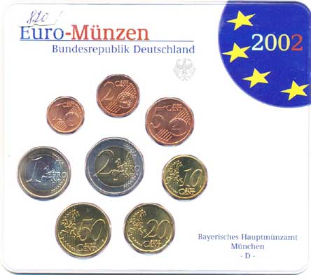 | 3320. | Ročníková sada mincí EURO 2002 minc. D (1, 2, 5, 10, 20, 50 Cent,