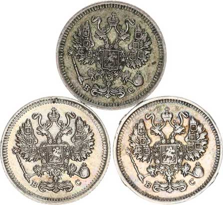| 3714. | 15 Kopějka 1871 SPB/HI, +15 Kop. 1879 SPB/NF, +20 Kop. 1910 SPB/E
