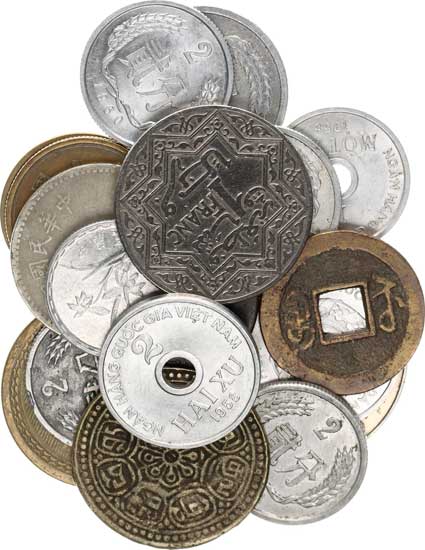 | 3876. | 18 kusů téměř různých mincí (Vietnam, Čína, Nepál...) 1x Ag | 0-2 | 60,- | 200,- |