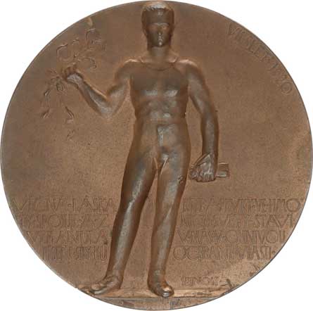 věnuje rodina Carla Hielle, 8-mi řádk. nápis, dole atributy H auser 8013 bronz 33x42 mm 24,84 g |