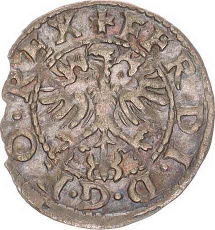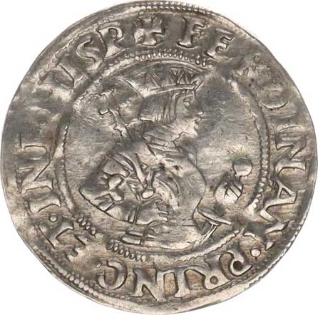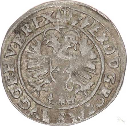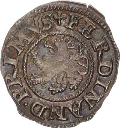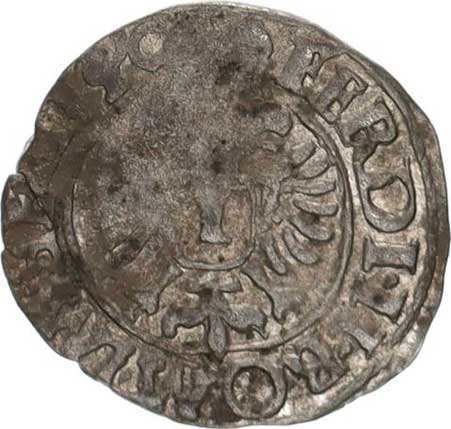 | 301. | Bílý peníz b.l., K.Hora opis: FERDINAND. PRIMVS vysoký křížek