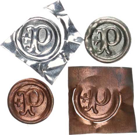 | 316. | Brakteátový haléř s písmenem P - 4 ks různých odražků Cu, Al | 0-0 | 100,- | 280,- |