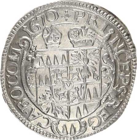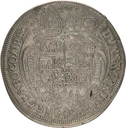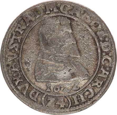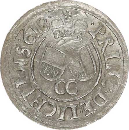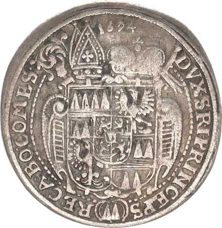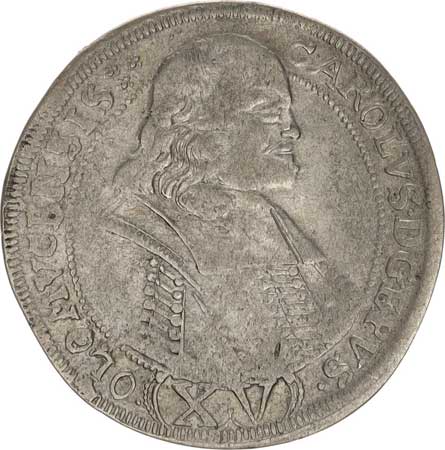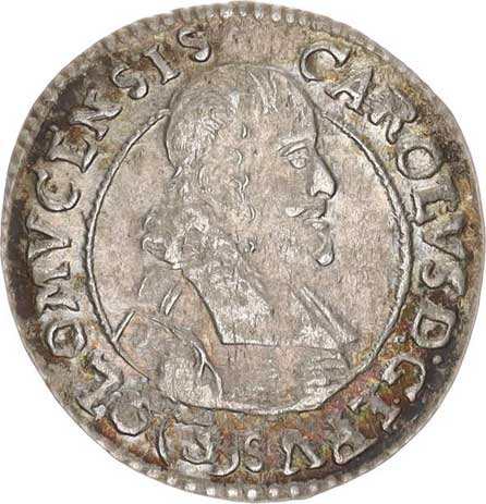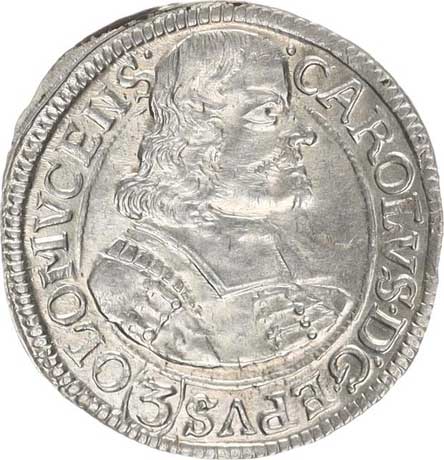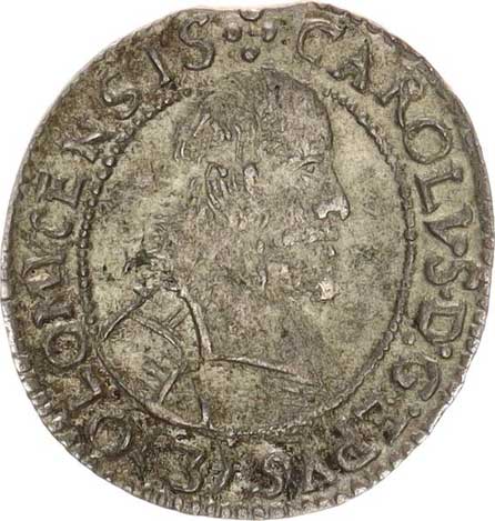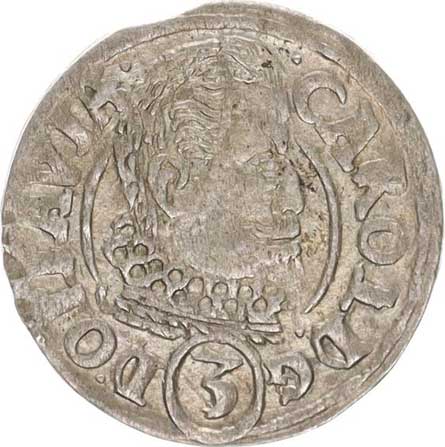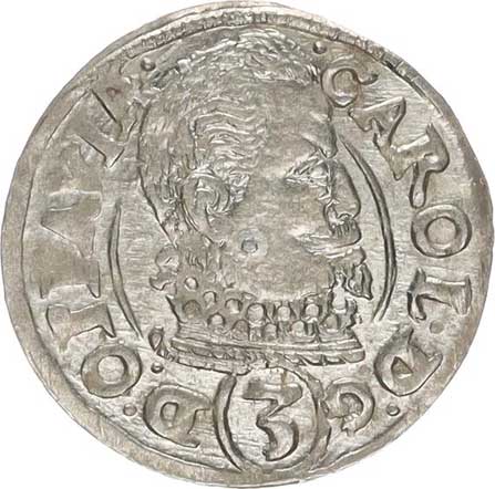 | 320. | 3 kr. 1618 CC Sa 30; Kop. 6370 opis: .CAROL.D.G()D. /