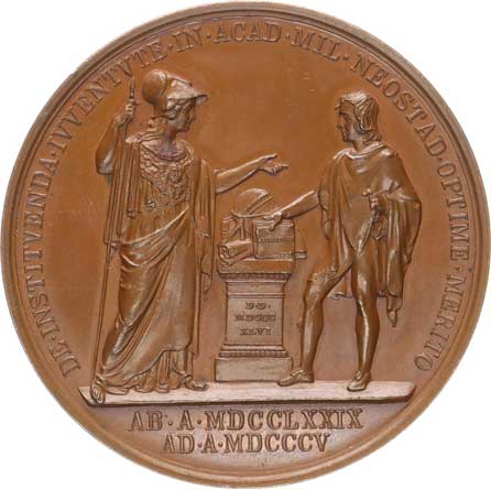 | 330. | Medaile 1805 - Poprí zleva, opis / Stojící Minerva a mladík, mezi