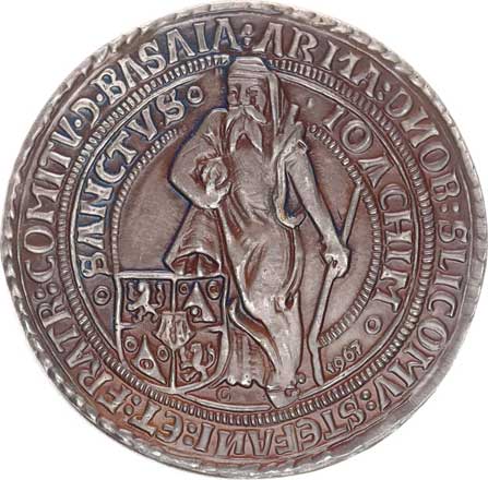| 328. | Početní peníz b.l., Jáchymov Znak, opis / Přilbice s klenotem, o