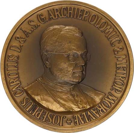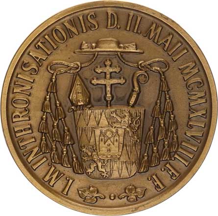| 367. | Intronizační medaile 1948, Poprsí arcibisk. vpravo, opis / Znak,