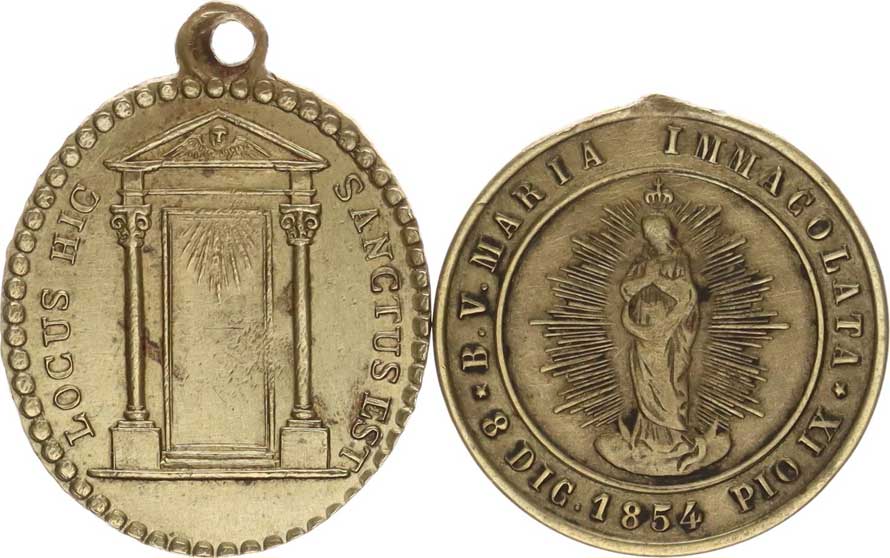 pražské arcidiecézi slavený 1826 mosaz 24x28 mm 2/ Lev XII., Medaile 1854 k vyhlášení dogmatu o Neposkvrněném poč etí mosaz 25 mm odstr. ouško |