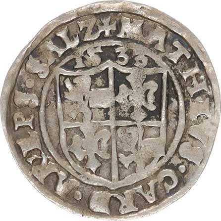 | 303. | Malý (černý) peníz 1539?, K.Hora-Běšín a Podivický MKČ 85
