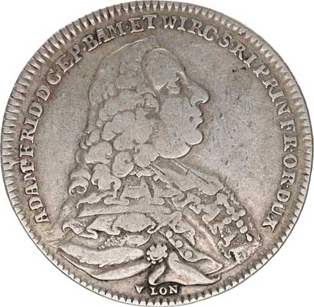 . CW Ag litá 39 mm 17,299 g zvýšený okraj, kolmé ouško Katz 231 / WWWIII-1; Killian 5769 |