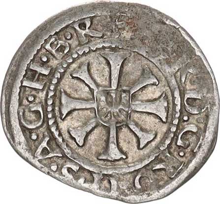 kolem neprolam.erbu s břevnem perličkový kruh, .GROS. ARC. III CRV. 617. Cp. 1,552 g mír. kraj. stř. |