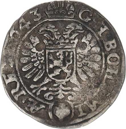 | 586. | 3 kr. 1643, Jáchymov-Knobloch MKČ 1220 var.: