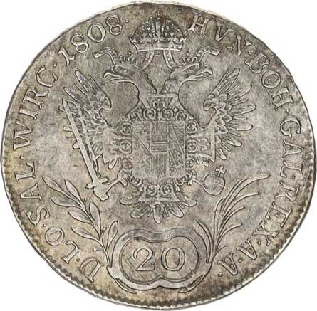 | 1125. | 20 kr. 1808 D, Salzburg "R" | -1/1 | 1700,- | --.- |