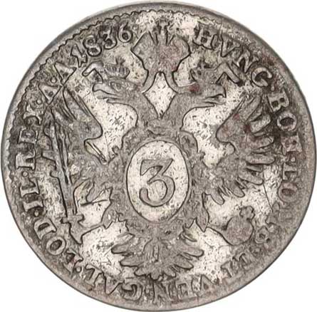 | 1302. | 3 kr. 1836 A - FERDINANDVS "RR" | -2/1- | 600,- | --.- |