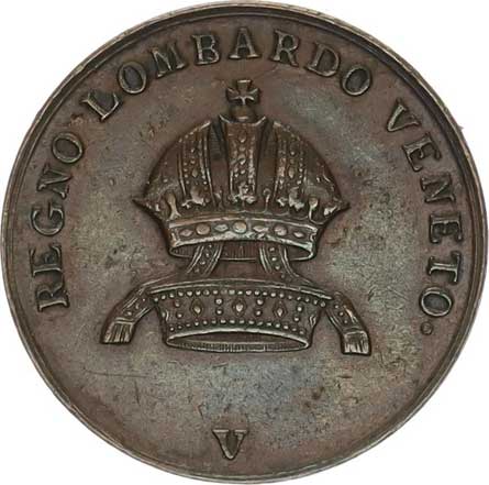 | 1335. | 5 Lire 1848 M - krátké konce ratolestí věnce nad letopočtem, hvěz