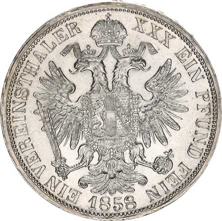 | 1351. | Tolar spolkový 1858 B 18,503 g | 0/RL | 4600,- | 5000,- |