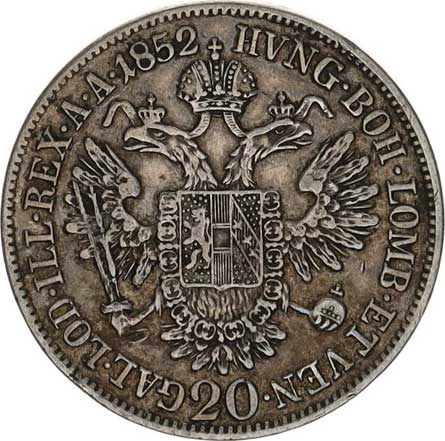 | 1694. | 20 kr. 1852 A - hlava vlevo "R" | -1/1 | 5000,- | --.- |