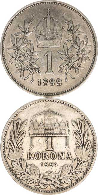 | 1899. | 1 Koruna 1894 KB, 1899 b.zn. 2 ks | 1-2 | 110,- | 220,- |
