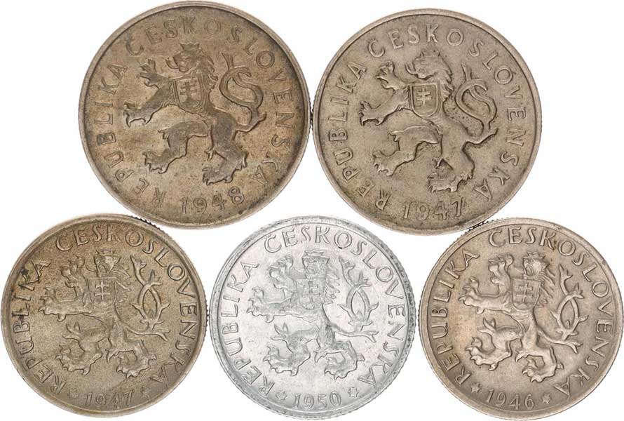 | 2352. | 1 Kčs 1946, 1947 CuNi., 1950 Al; +2 Kčs 1947, 1948 5 ks | RL-0 | 20,- | 40,- |