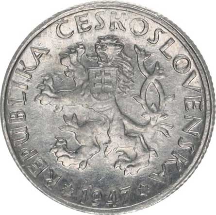 | 2346. | 20 hal. 1947 - var.: po stranách hlavy lva paprsky "RR"