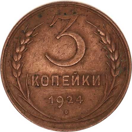 | 3905. | 3 Kopějka 1924, var. hladká hrana "R" Y. 78 tém. | 1/1 | 150,- | 150,- |