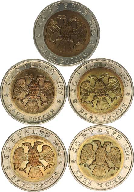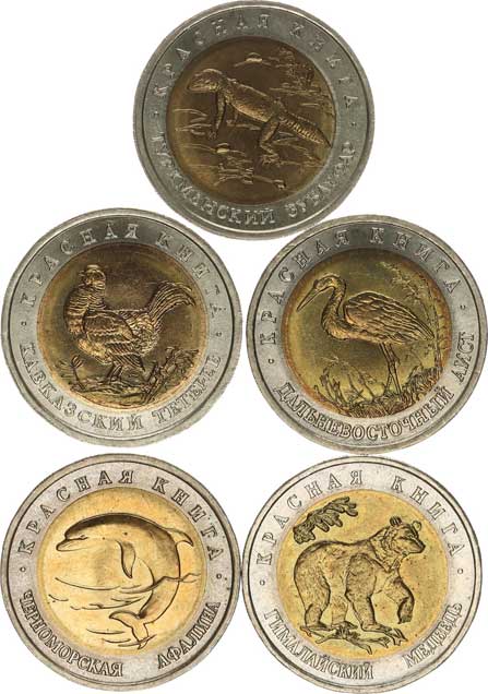 | 3935. | 50 Rubl 1993 - Červená kniha, medvěd, delfín, čáp, tetřev, gekon