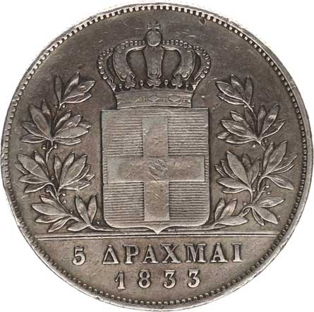 | 3936. | 5 Drachmai 1833 minc. Mnichov KM 20 "RR" 21,946 g
