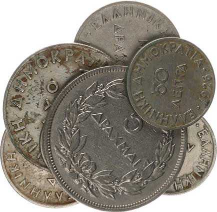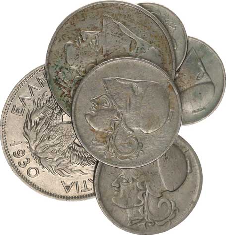 | 3940. | 5 Drachmai 1930; +2 Drachmai 1926; +1 Drachma 1926, 1926 B; +50 L