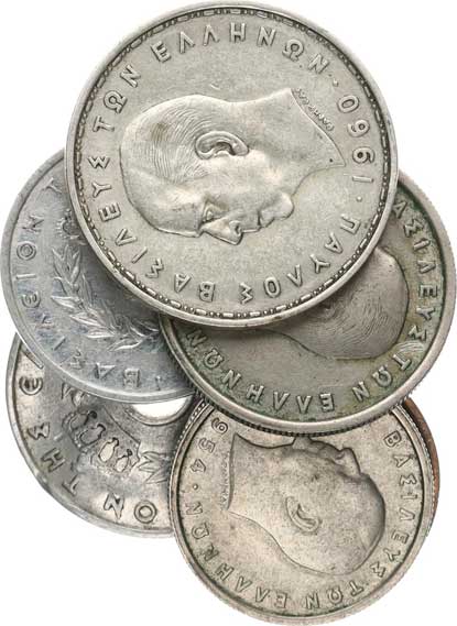 | 3942. | 2 Drachmai 1959, 1 Drachma 1959; +Konstantin II. - 5 Drachmai 196