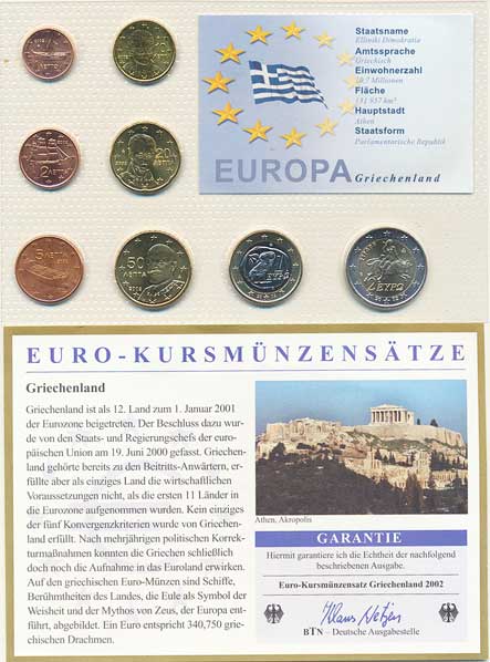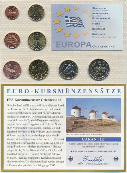 | 3967. | Ročníková sada EURO mincí 2002 (1, 2, 5, 10, 20, 50 Cents, 1, 2 E