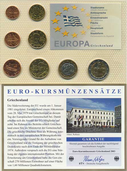 | 3969. | Ročníková sada EURO mincí 2003 (1, 2, 5, 10, 20, 50 Cents, 1, 2 E