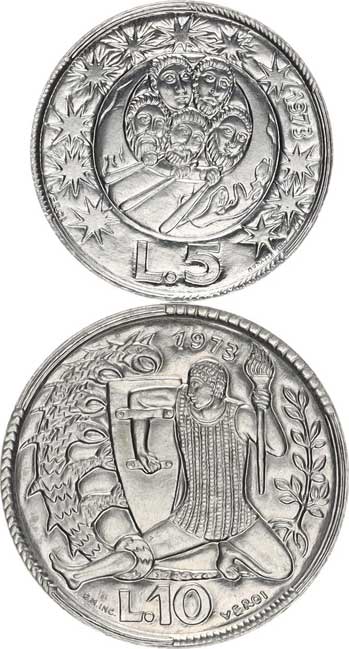 | 3941. | 10, 20 Lepta 1, 2 Drachmai 1954; +1, 2 Drachmai 1988; +20 Drachma
