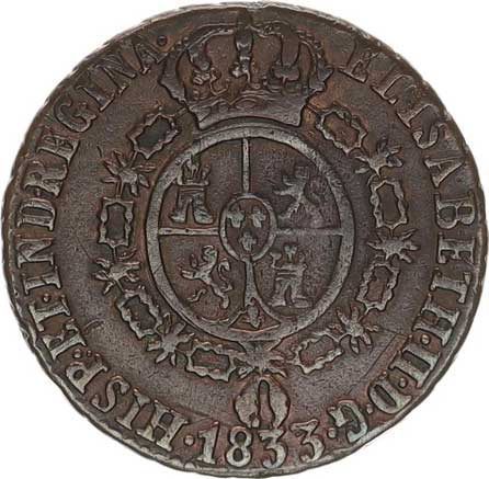 | 3953. | Medaile 1833, Proklamace v Segovii, Korunovaná kartuš se znaky Ca