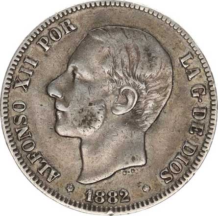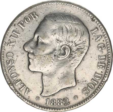 | 3956. | 2 Pesetas 1882 MS-M Ag 835 10 g Cr.76; KM 678 | 1/1 | 360,- | --.- |