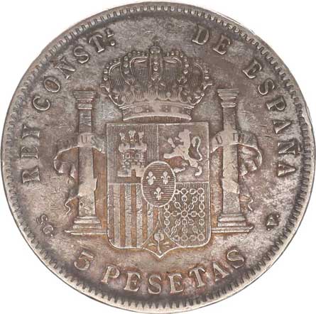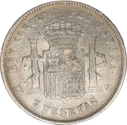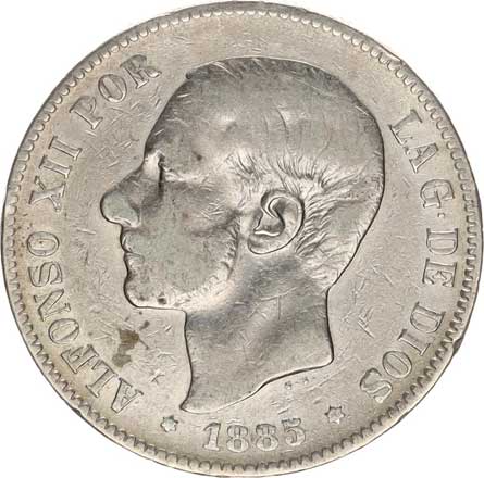 | 3955. | 5 Pesetas 1885 MS-M Y.76 | -1/1- | 600,- | --.- |
