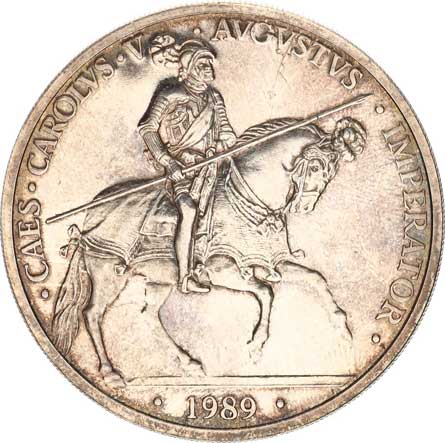 | 3966. | 5 Ecu 1989 - Carolus V. na koni KM X M24 Ag 925