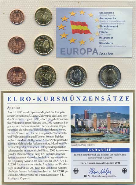 | 3945. | Ročníková sada EURO mincí 2002 (1, 2, 5, 10, 20, 50 Cents, 1, 2 E